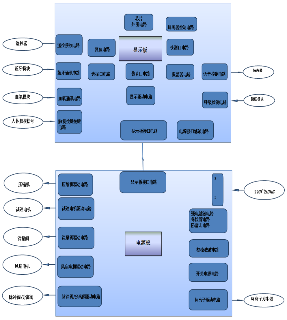 3)可支持遙控接收,藍牙通訊、血氧模組、電磁閥、風機、加濕等部件的選配需求;